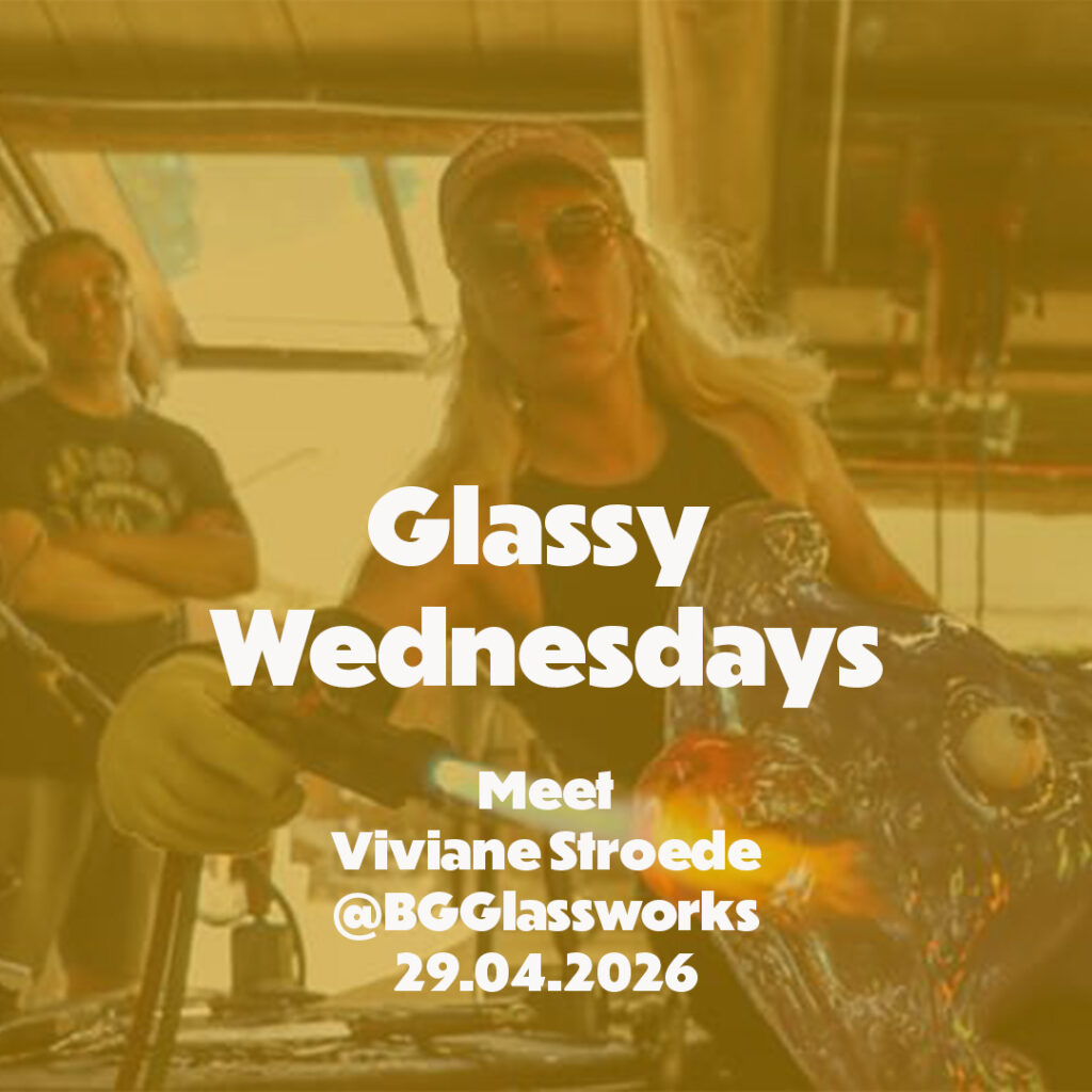 Meet Viviane Stroede. Sculptor, mixed media artist, and our lead gaffer, Vivi first came to Berlin Glassworks in 2017 as an intern, stepping away from a world of conflict studies, communication, and literature. She then signed up for a class, and following that first gather, first try was a perfect bubble, popped dead-center. Her instructor said: yeah… that doesn’t happen often… 🙂